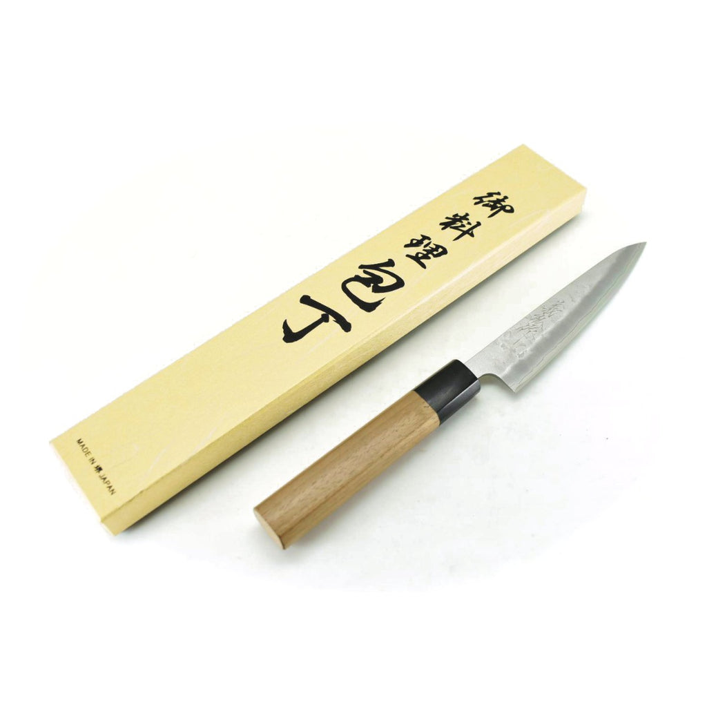 和庖丁のステンレス鋼材として有名な銀三(銀3)を芯材にステンレス鋼を割り込み、ウォールナット八角柄を組み合わせた高級感のある一品です。鋭い切れ味と共に、切れ味が長く保てるのが特徴です。