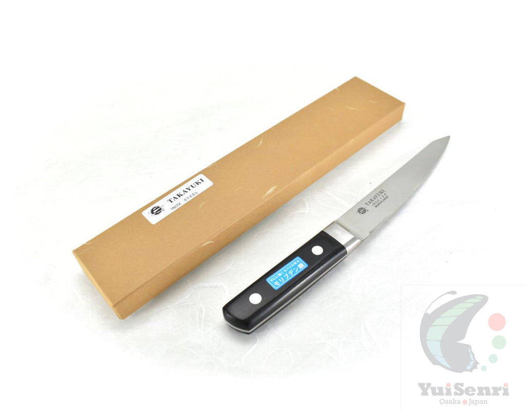 モリブデン特殊鋼を使用したサビに強いプロ用の庖丁です、刃研ぎは一丁ごとに職人の手研ぎで仕上げております。
