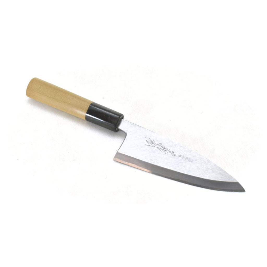 これは 義弘 "jousaku" ajikiri(小 出刃 小さい魚の場合)、でできています Yasuki 白鋼(白紙)右利きの#2、D字型 ハンドル(日本 朴 木 ハンドル & 水牛柄).