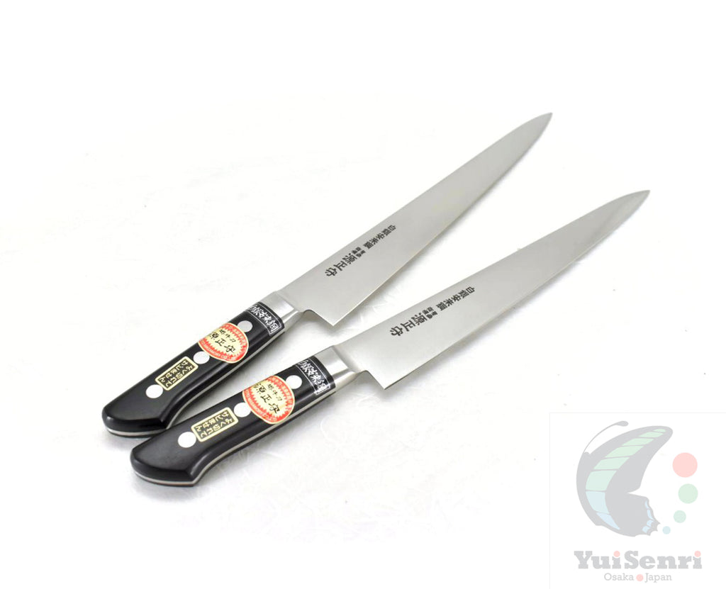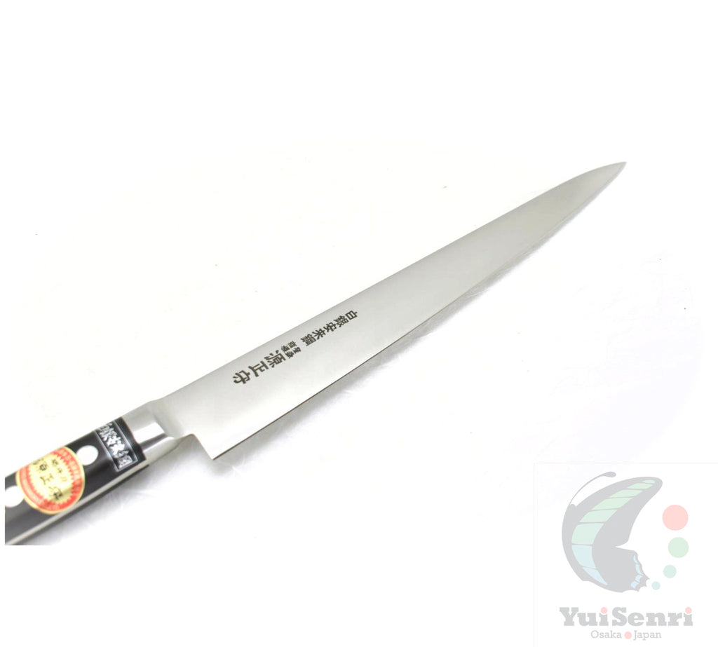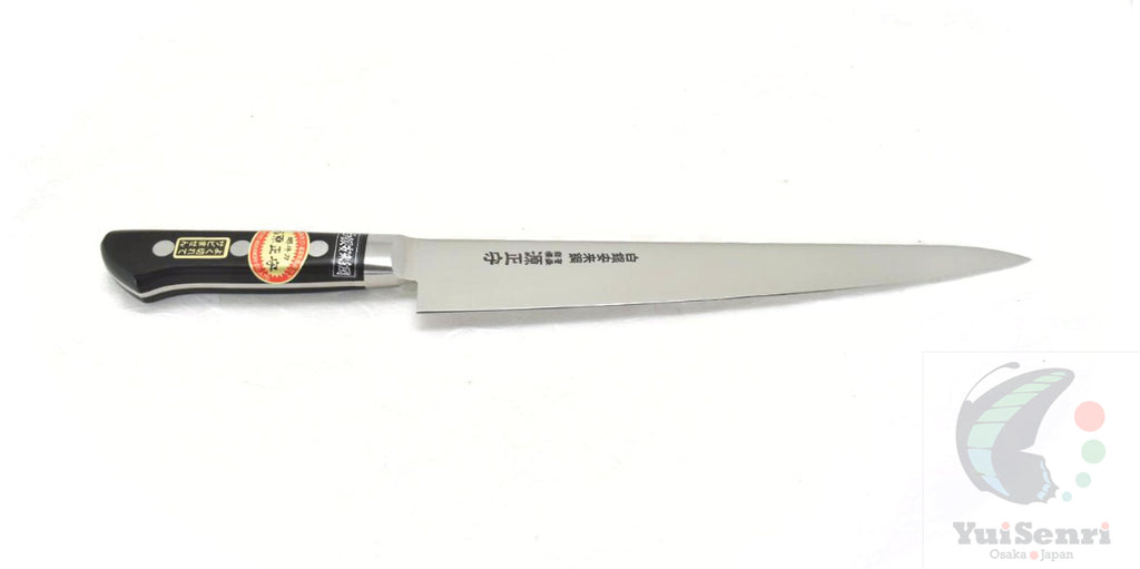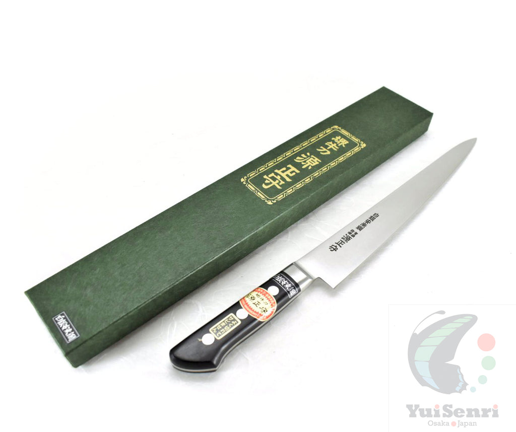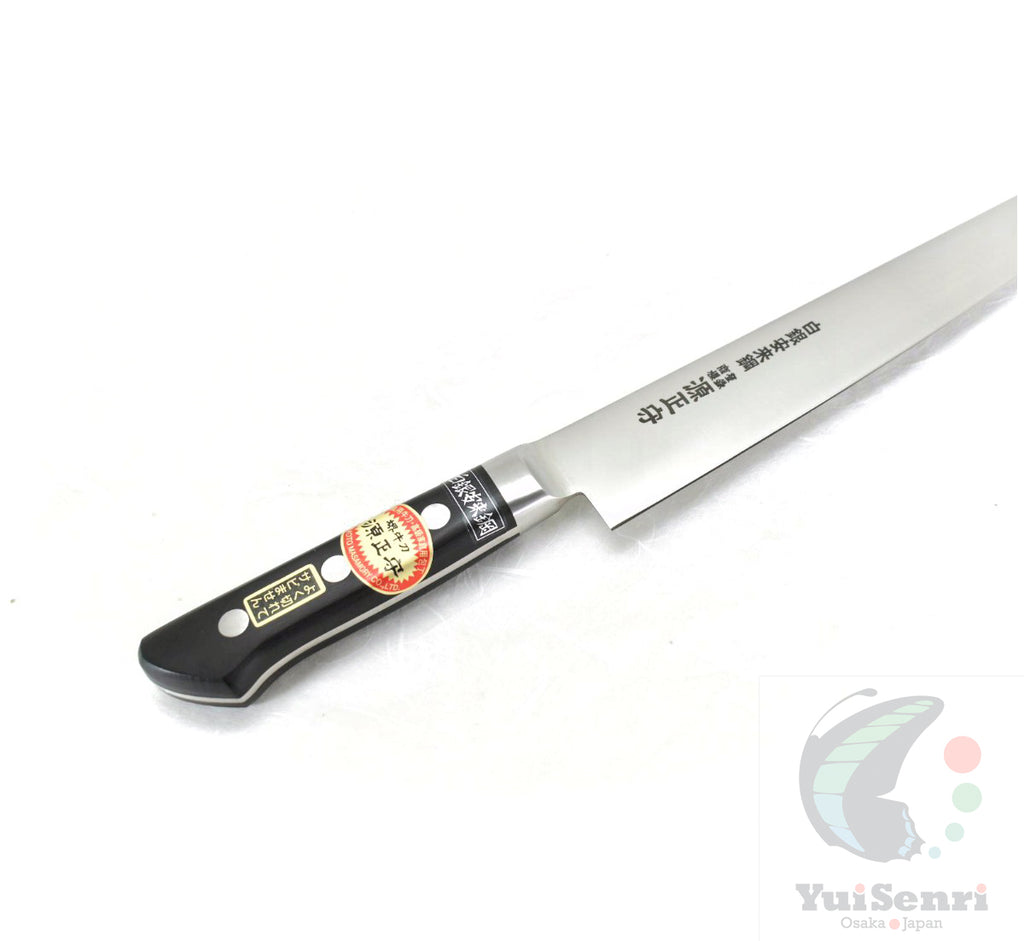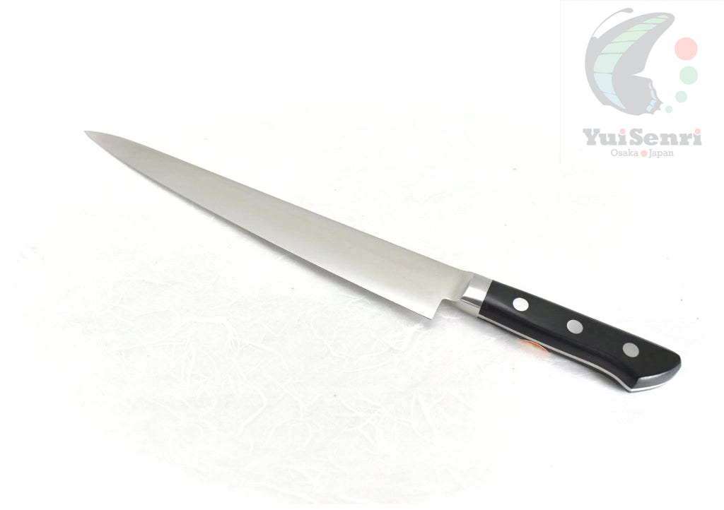 ステン系鋼材(白銀安来鋼)を使ったサビに強いプロ用庖丁です。メイン画像は刃渡り240 mmのものとなります。