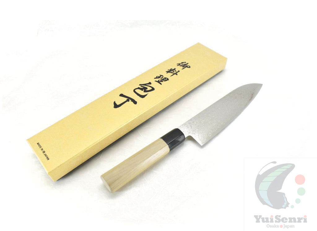 義弘《ZADシリーズ》AUS10割込 磨き鍛造ダマスカス 和三徳 180 mm【朴八角柄】